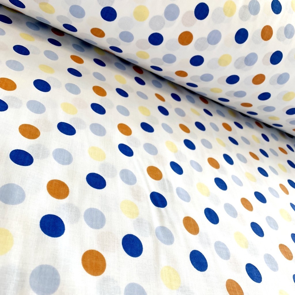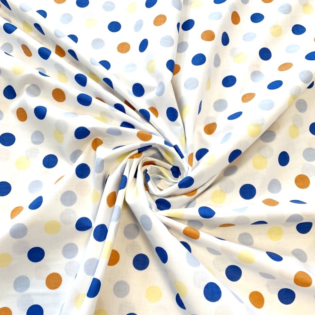 Coton OEKO TEX gros pois marine brun fond blanc en 160cm